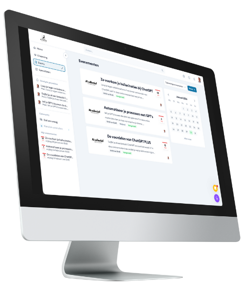 Via de community, masterclasses en e-learning zorg je dat kennis niet verdwijnt, maar in je organisatie blijft. Zo bouw je structureel AI-kennis op en blijf je concurrerend.
