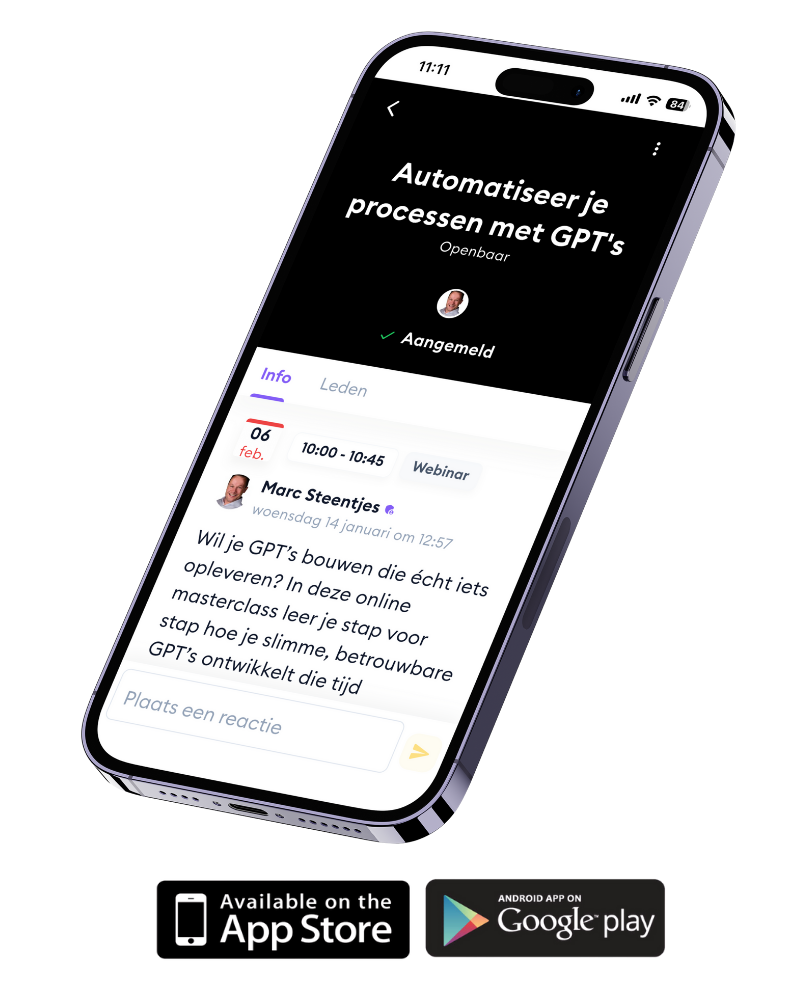 Je krijgt toegang tot een landelijk netwerk van AI-specialisten, ondernemers en professionals die dagelijks met AI werken binnen echte organisaties. Geen theorie, maar directe praktijkervaring.